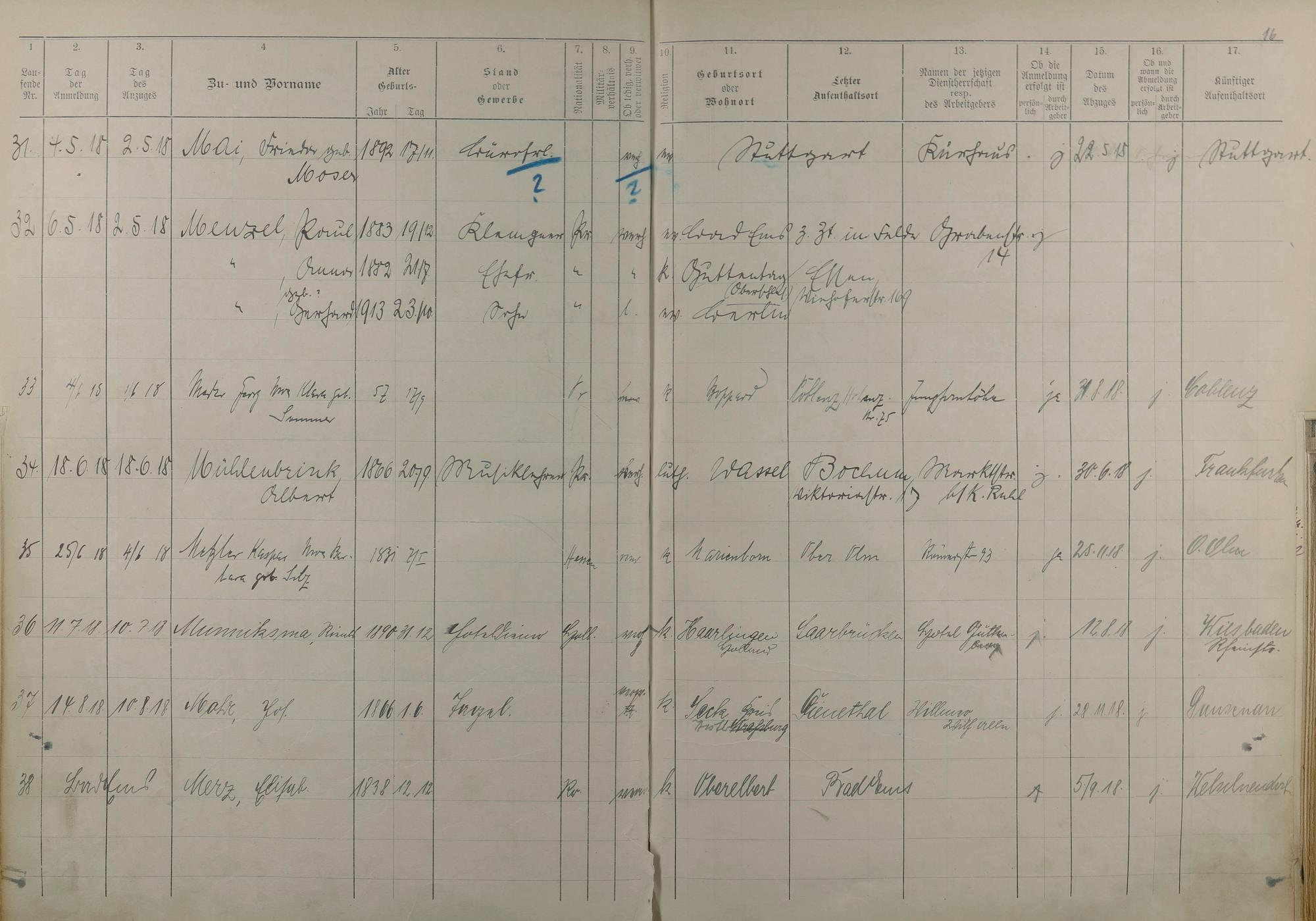 Melderegister 1915 - 1923
