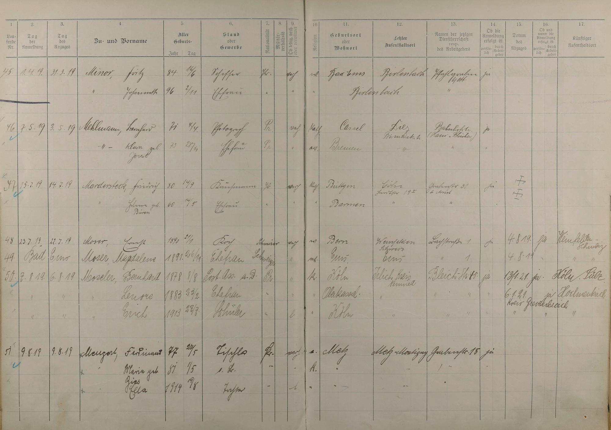 Melderegister 1915 - 1923