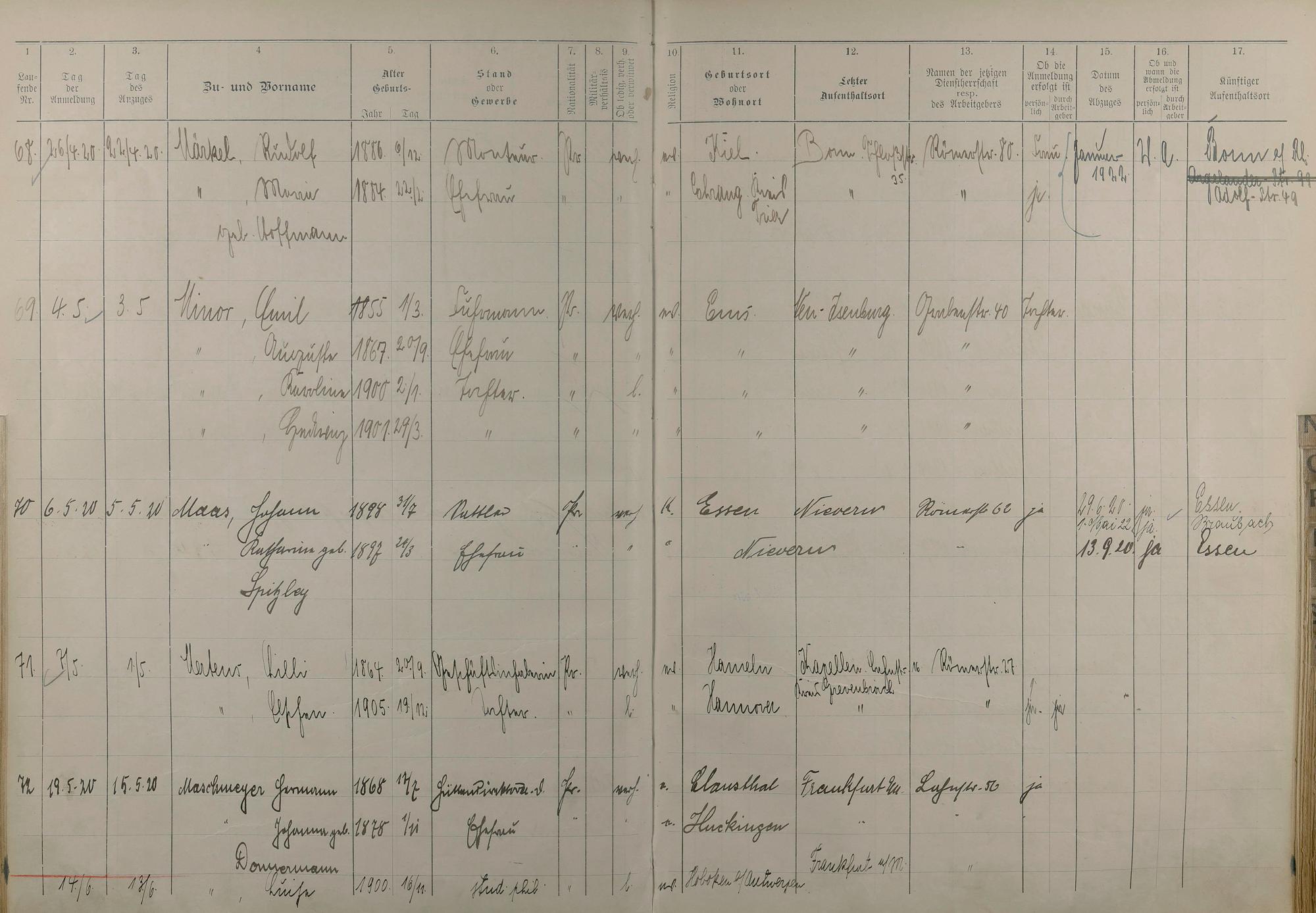 195: Melderegister 1915 - 1923