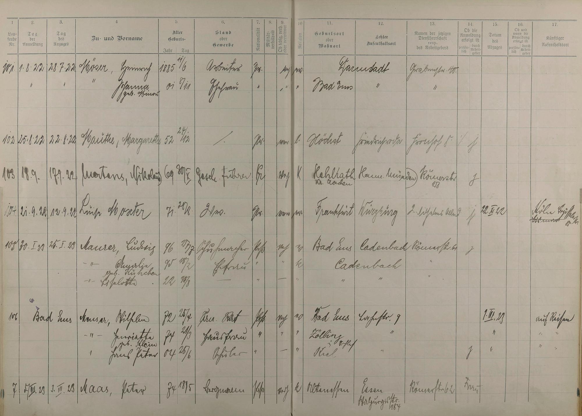 195: Melderegister 1915 - 1923