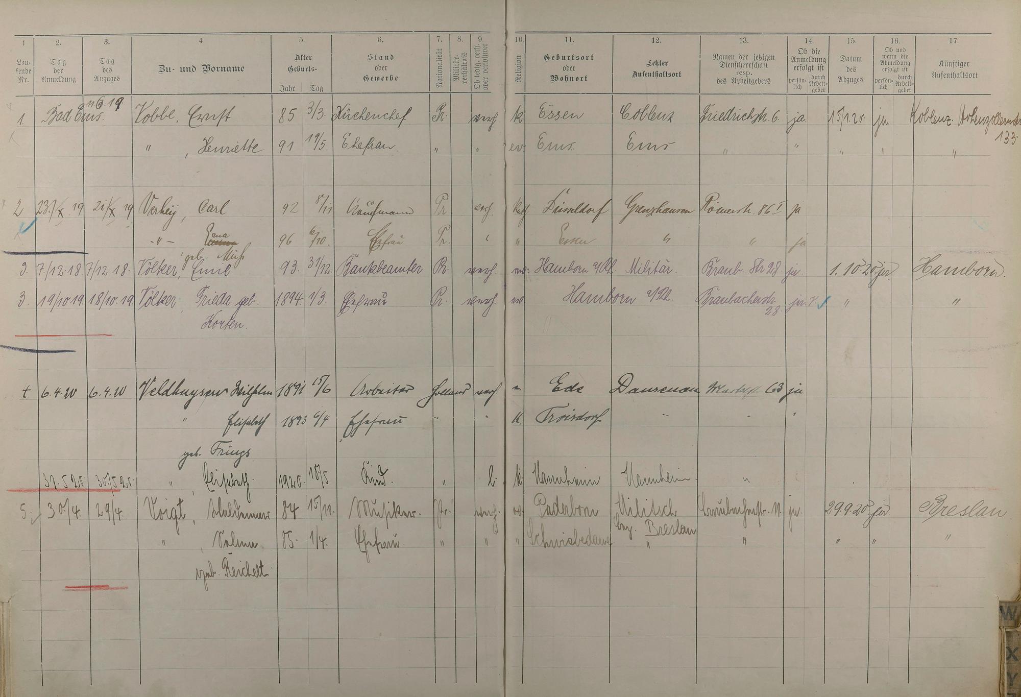 195: Melderegister 1915 - 1923
