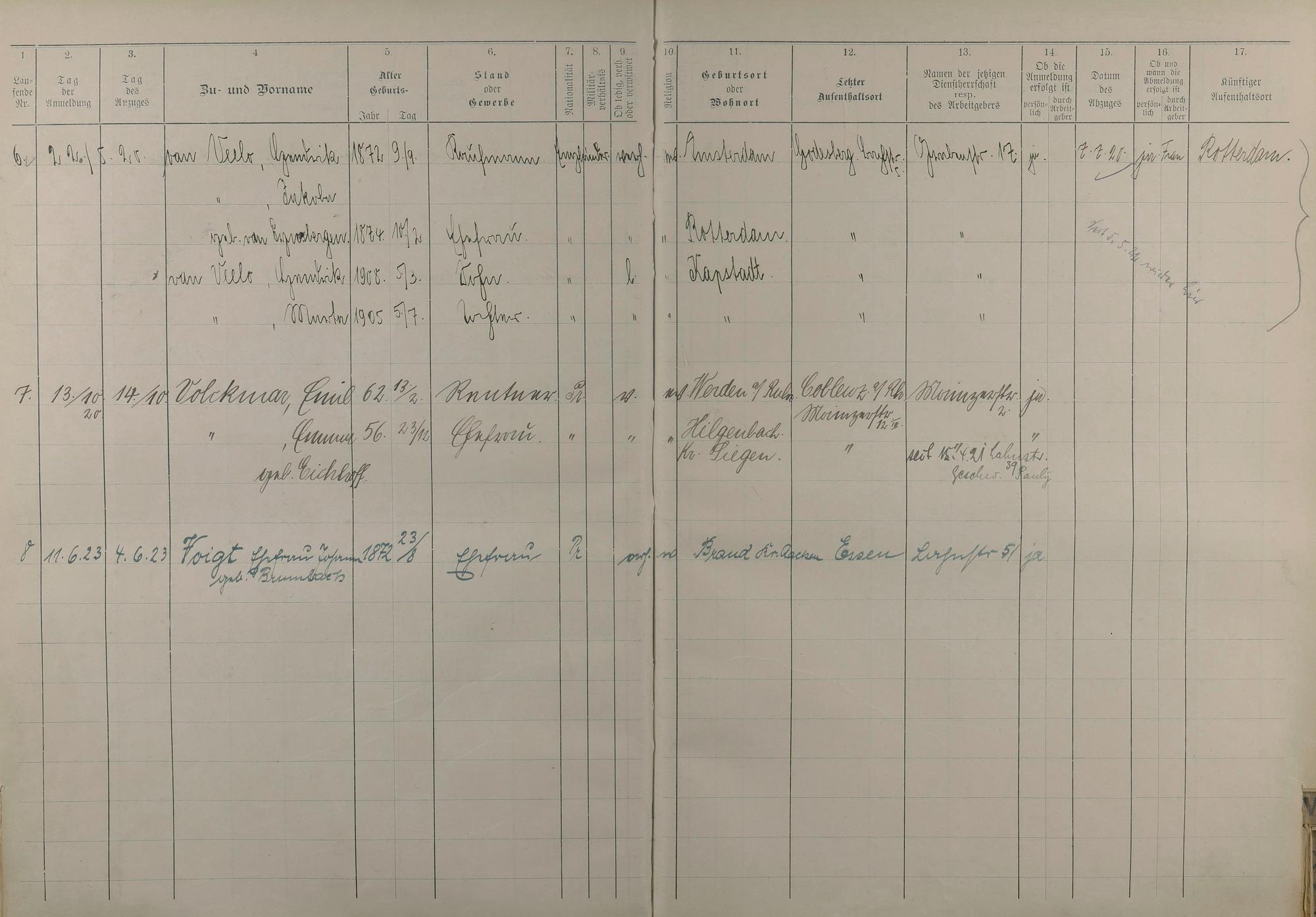 Melderegister 1915 - 1923