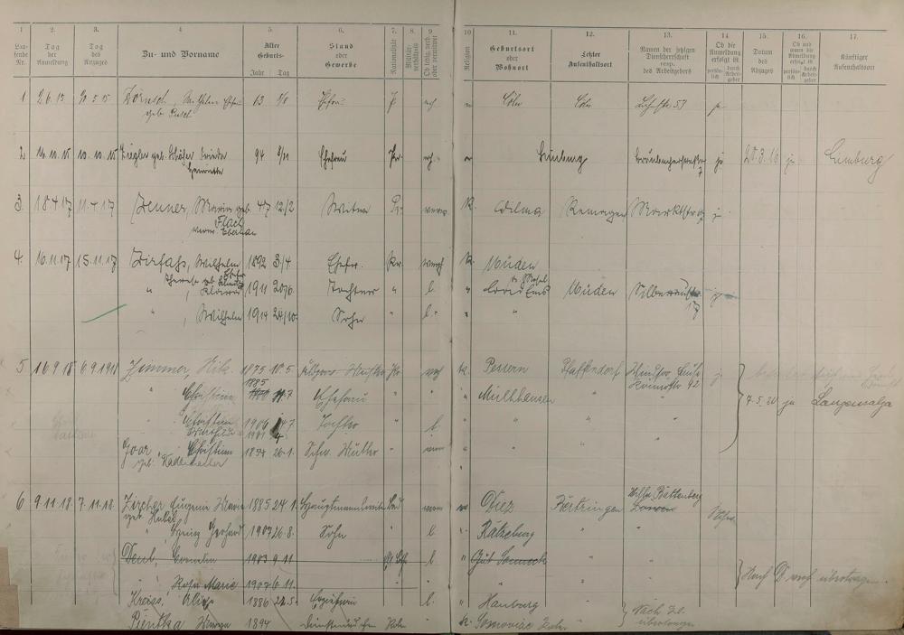Melderegister 1915 - 1923