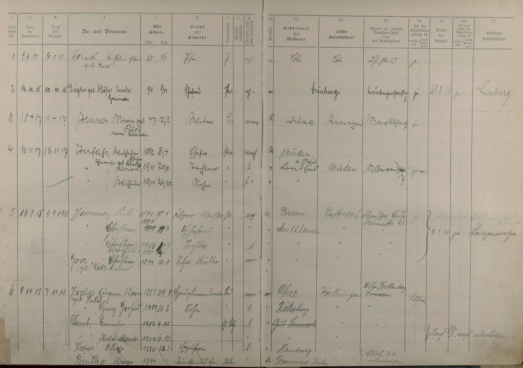 195: Melderegister 1915 - 1923