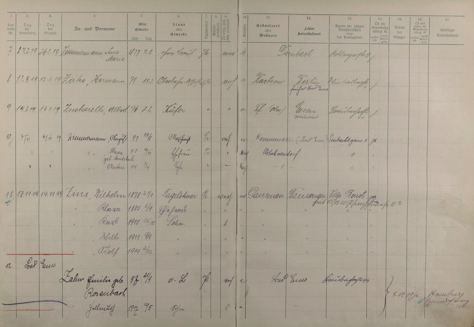 Melderegister 1915 - 1923