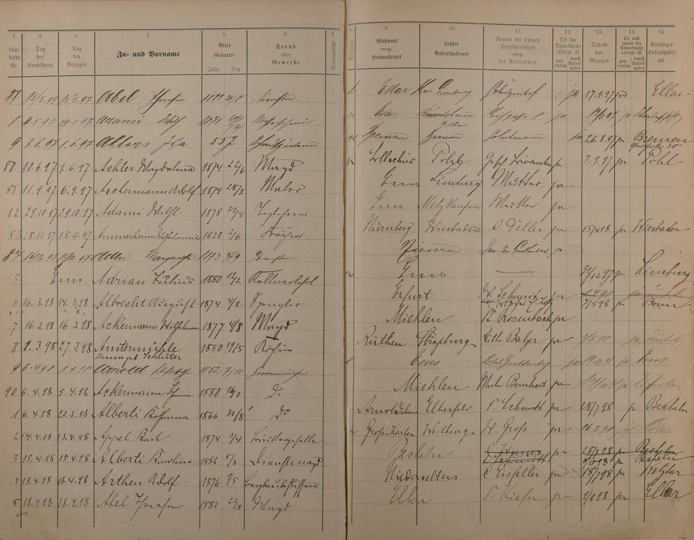 181: Melderegister der Gewerbegehilfen, Gesellen und Dienstboten 1895 - 1899