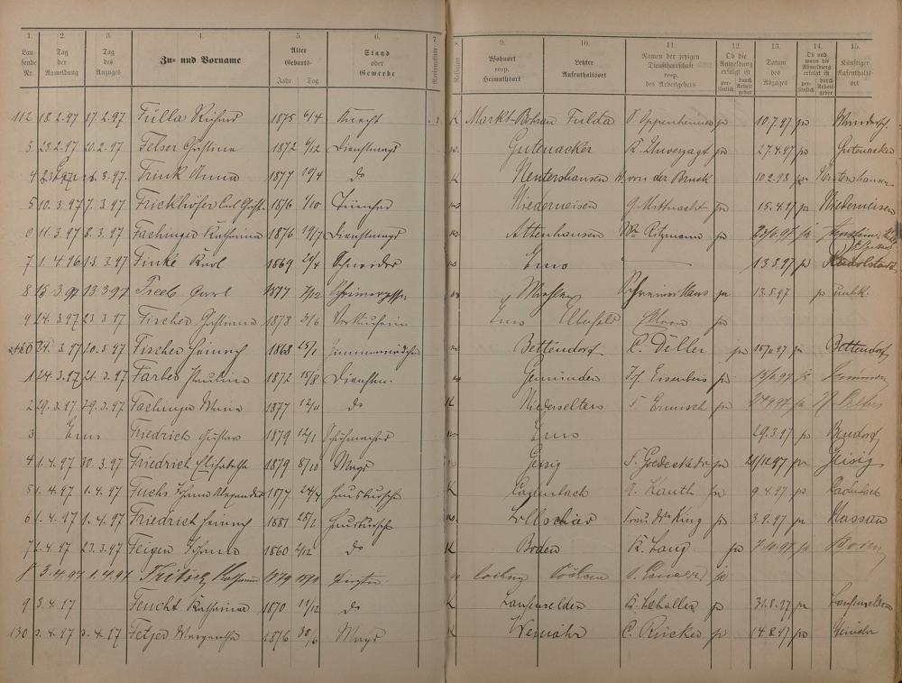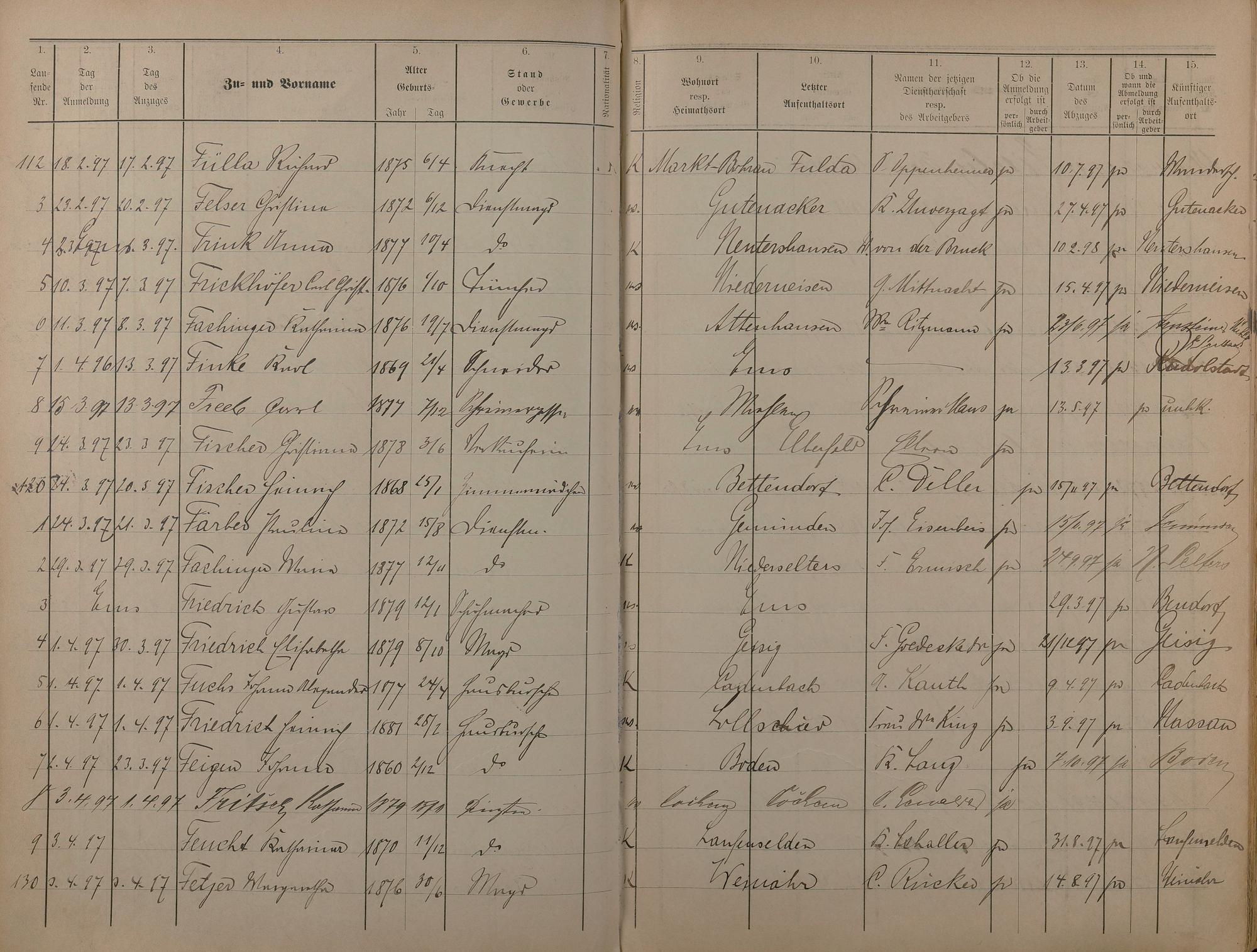 Melderegister der Gewerbegehilfen, Gesellen und Dienstboten 1895 - 1899