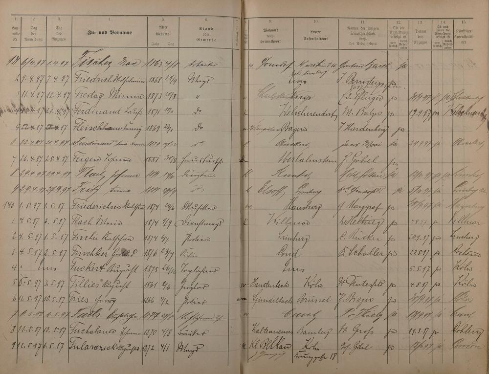 Melderegister der Gewerbegehilfen, Gesellen und Dienstboten 1895 - 1899