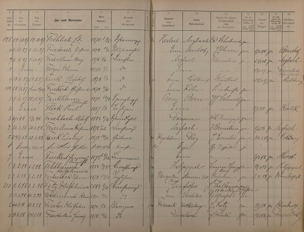 181: Melderegister der Gewerbegehilfen, Gesellen und Dienstboten 1895 - 1899