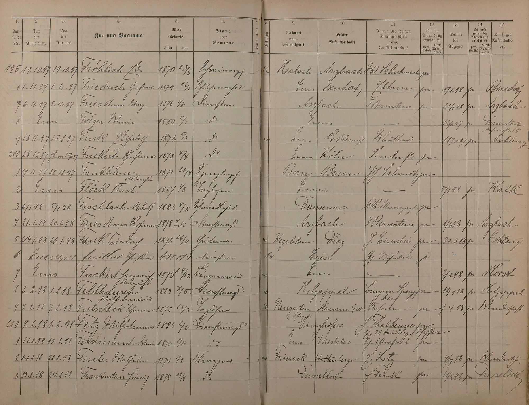 Melderegister der Gewerbegehilfen, Gesellen und Dienstboten 1895 - 1899