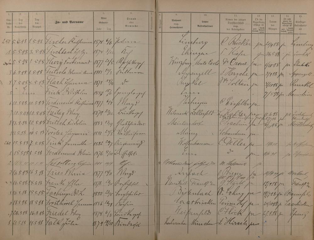 181: Melderegister der Gewerbegehilfen, Gesellen und Dienstboten 1895 - 1899