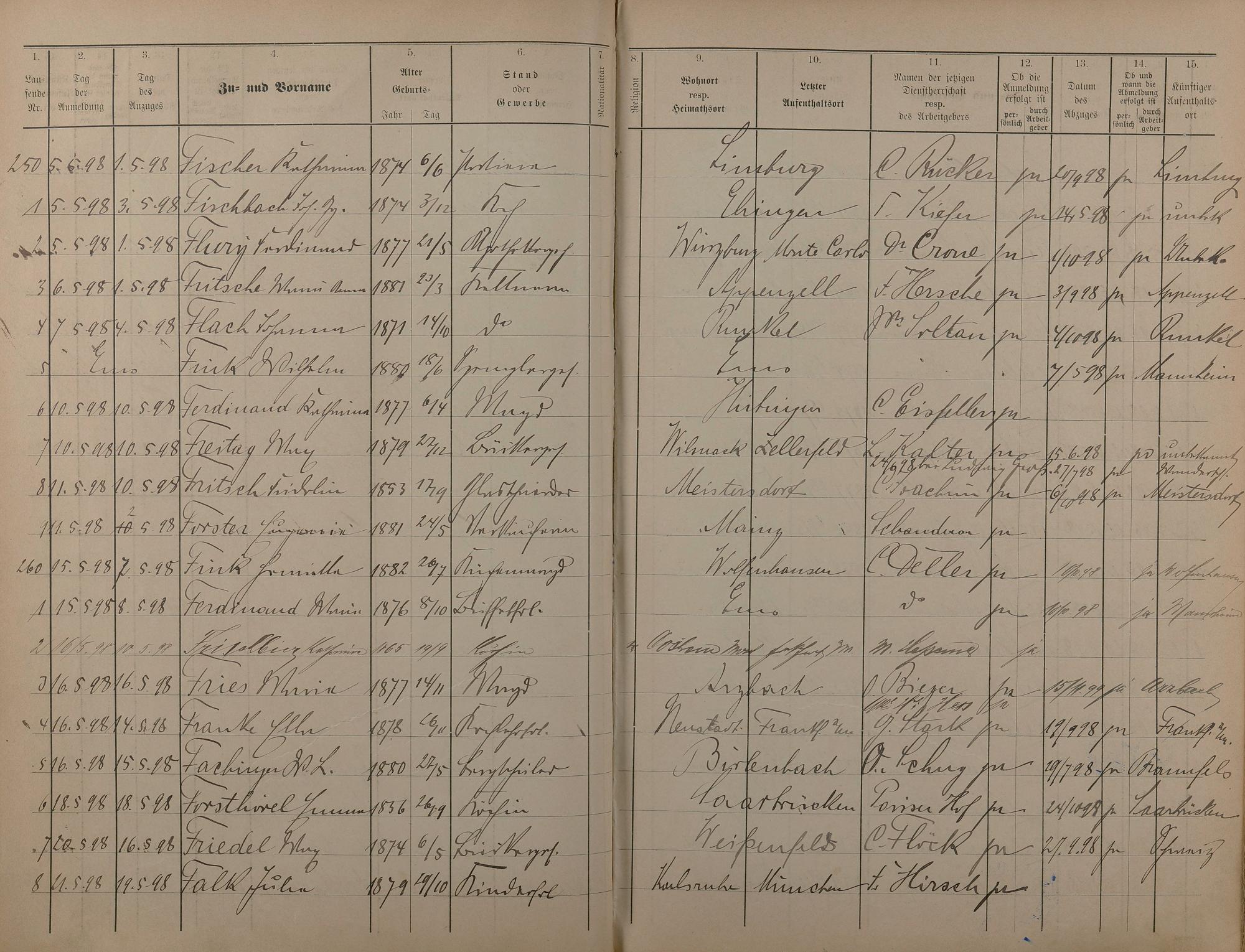 Melderegister der Gewerbegehilfen, Gesellen und Dienstboten 1895 - 1899