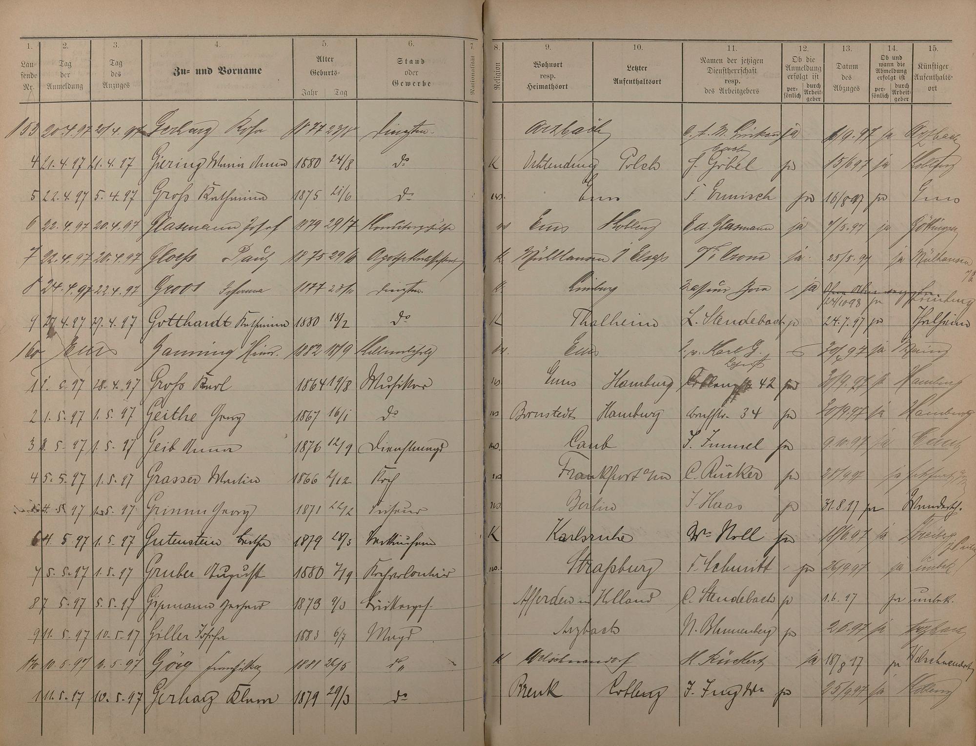 Melderegister der Gewerbegehilfen, Gesellen und Dienstboten 1895 - 1899