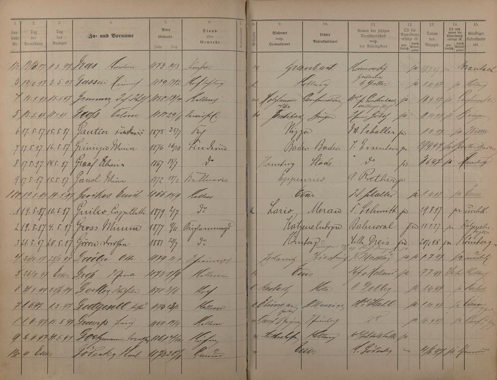 Melderegister der Gewerbegehilfen, Gesellen und Dienstboten 1895 - 1899