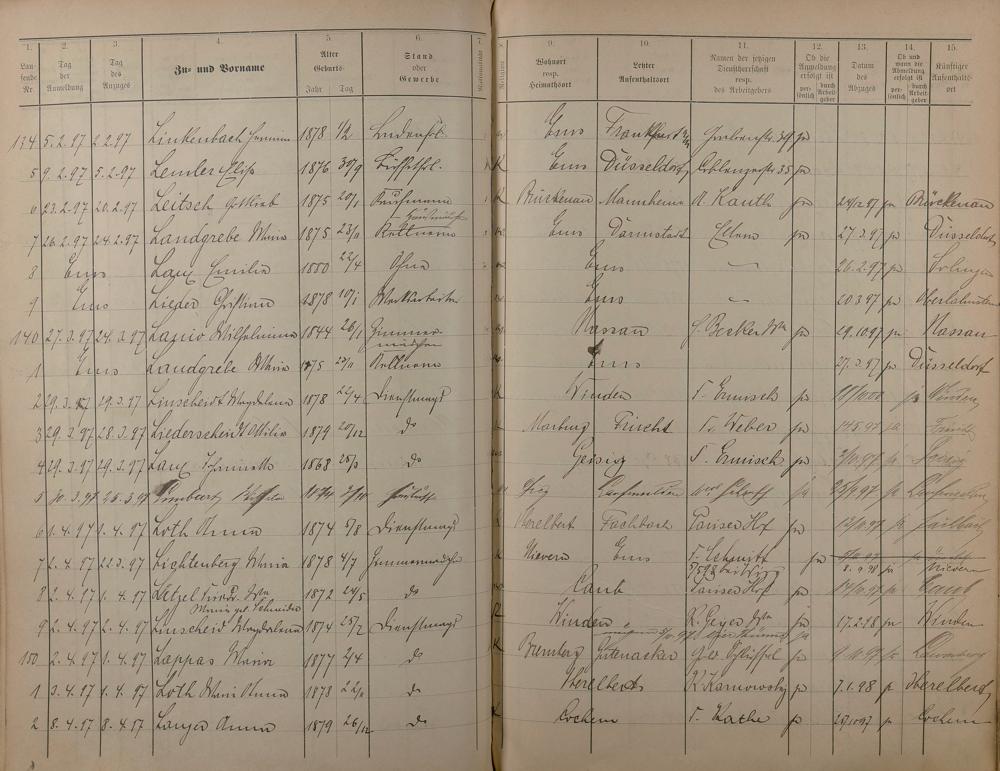 Melderegister der Gewerbegehilfen, Gesellen und Dienstboten 1895 - 1899