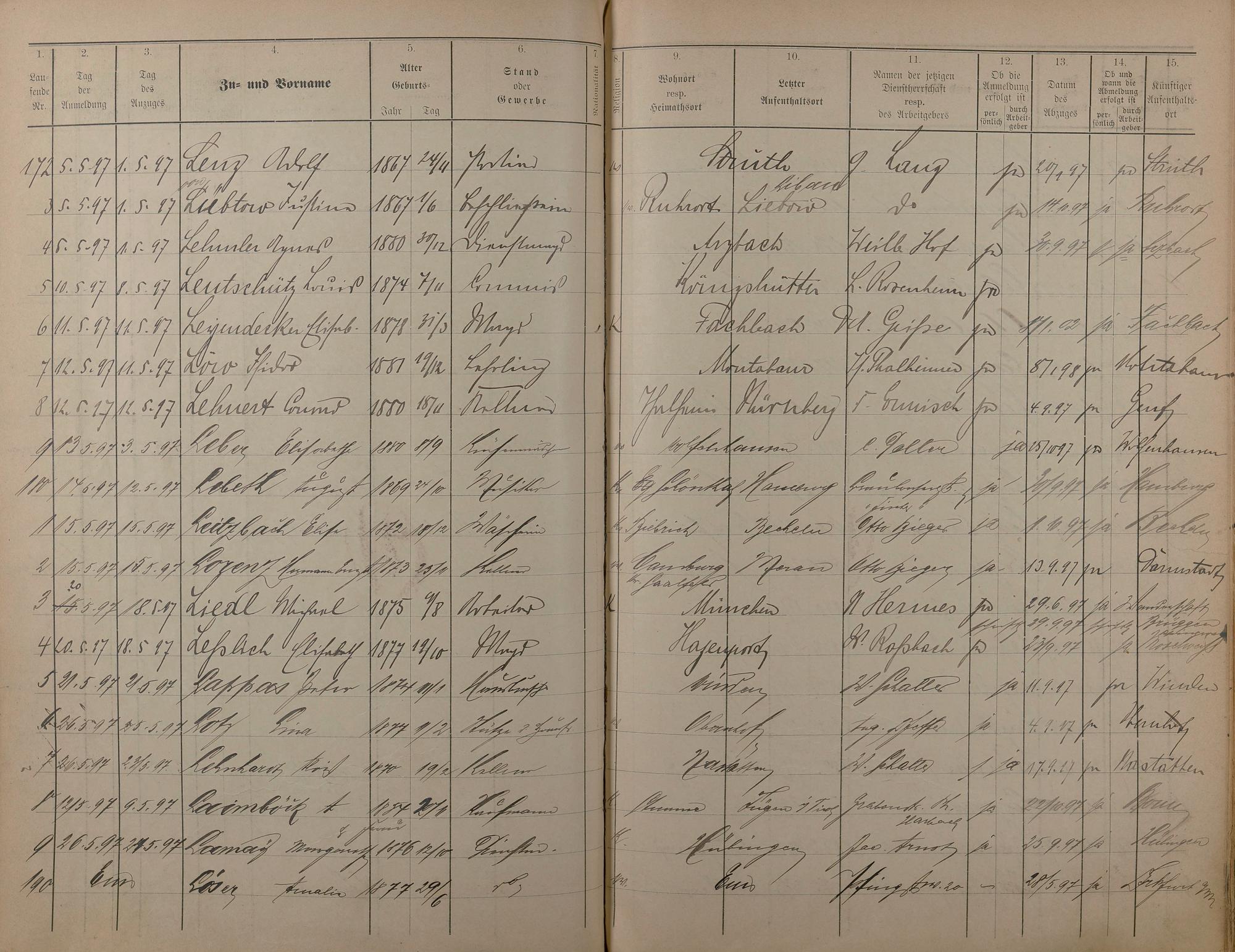 181: Melderegister der Gewerbegehilfen, Gesellen und Dienstboten 1895 - 1899