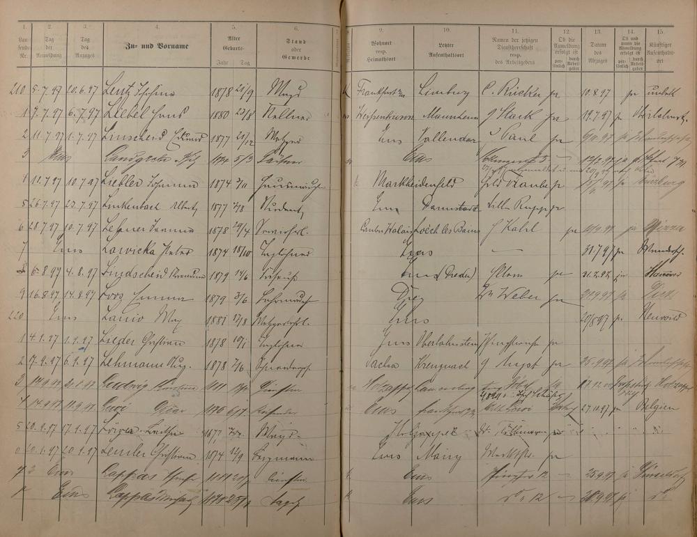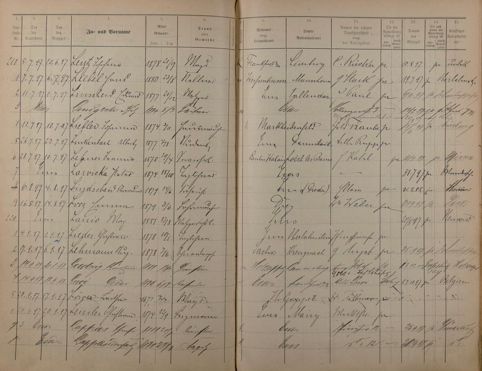 Melderegister der Gewerbegehilfen, Gesellen und Dienstboten 1895 - 1899