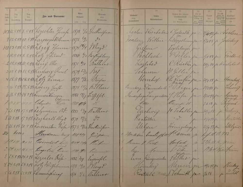 Melderegister der Gewerbegehilfen, Gesellen und Dienstboten 1895 - 1899