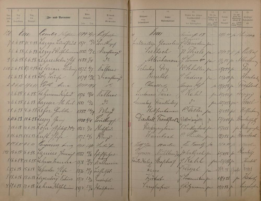 Melderegister der Gewerbegehilfen, Gesellen und Dienstboten 1895 - 1899