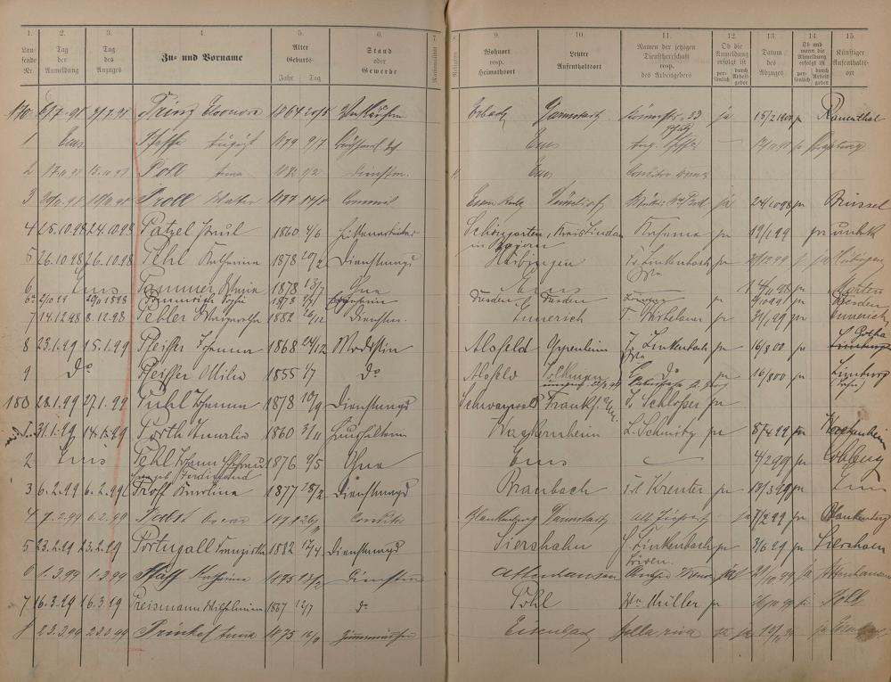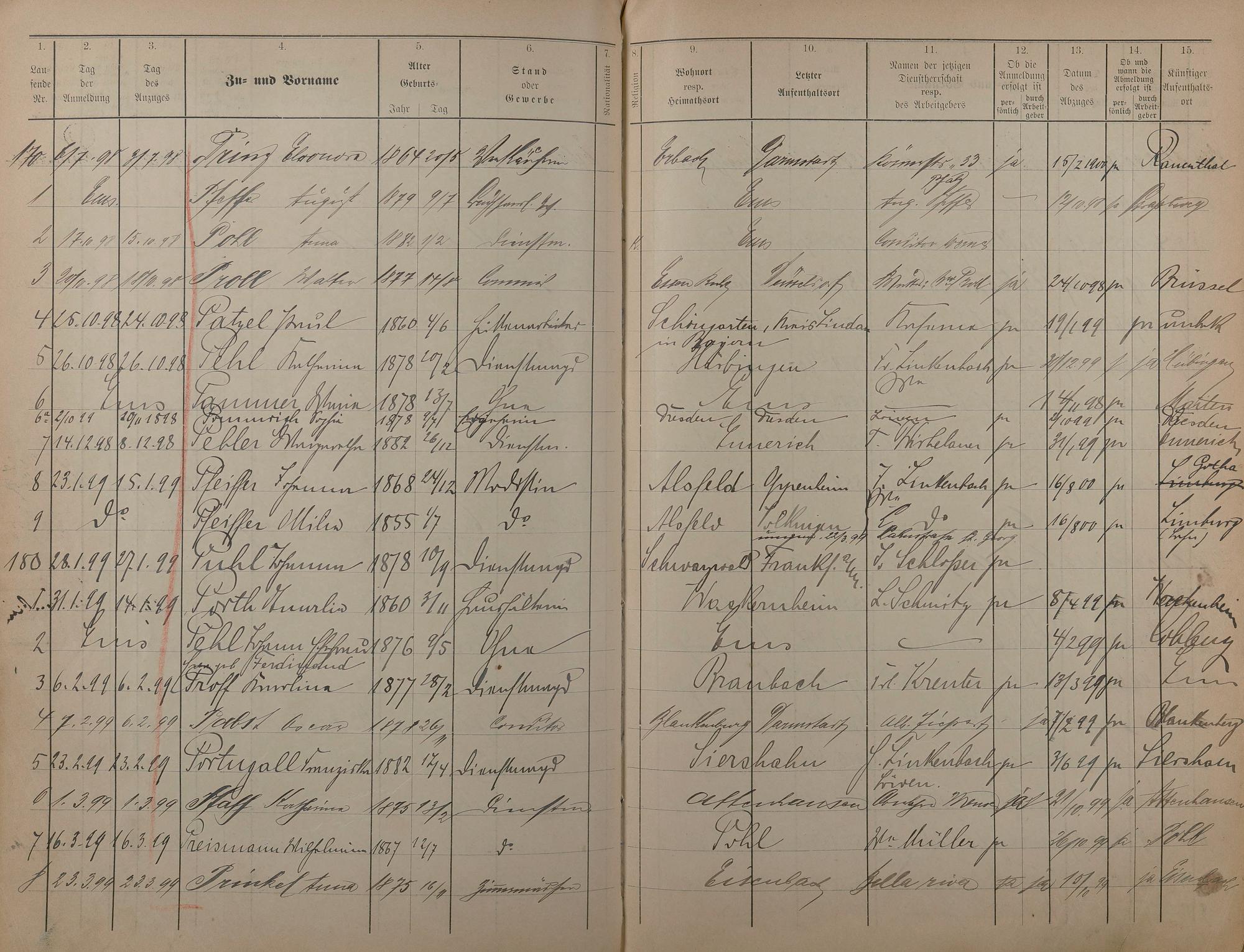 181: Melderegister der Gewerbegehilfen, Gesellen und Dienstboten 1895 - 1899