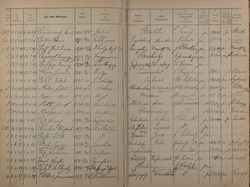 Melderegister der Gewerbegehilfen, Gesellen und Dienstboten 1895 - 1899