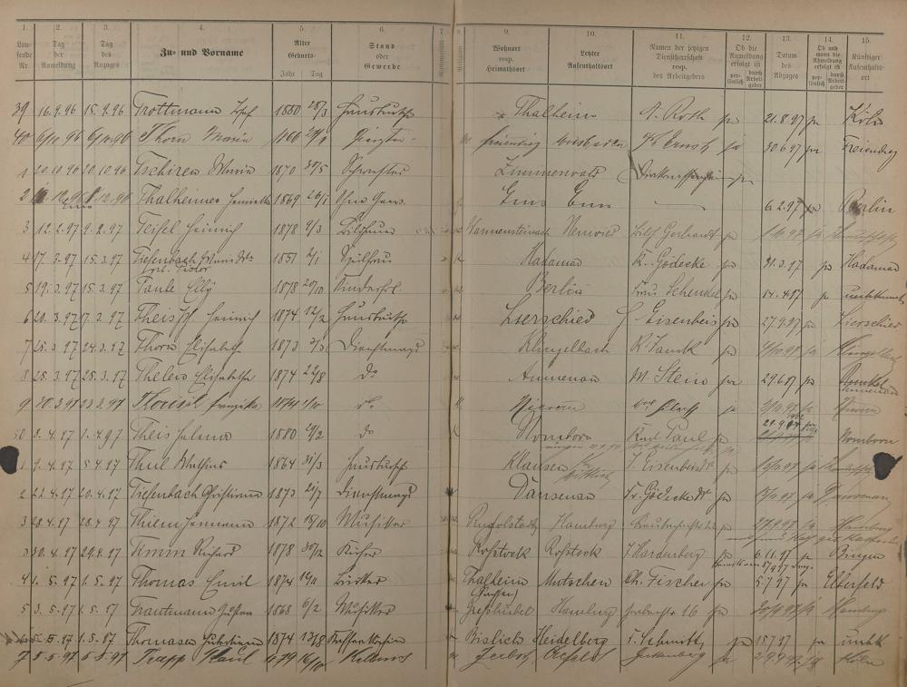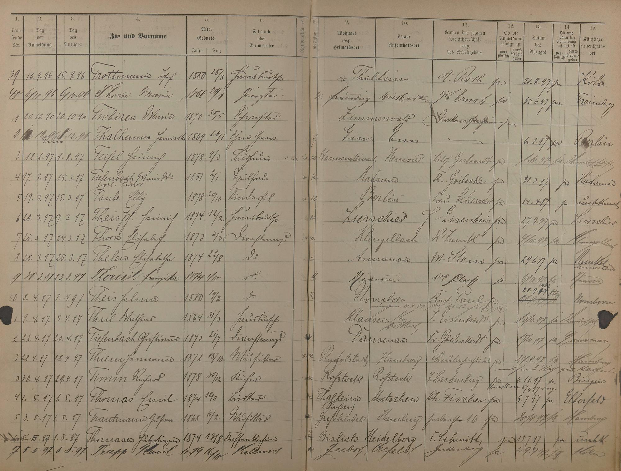 Melderegister der Gewerbegehilfen, Gesellen und Dienstboten 1895 - 1899