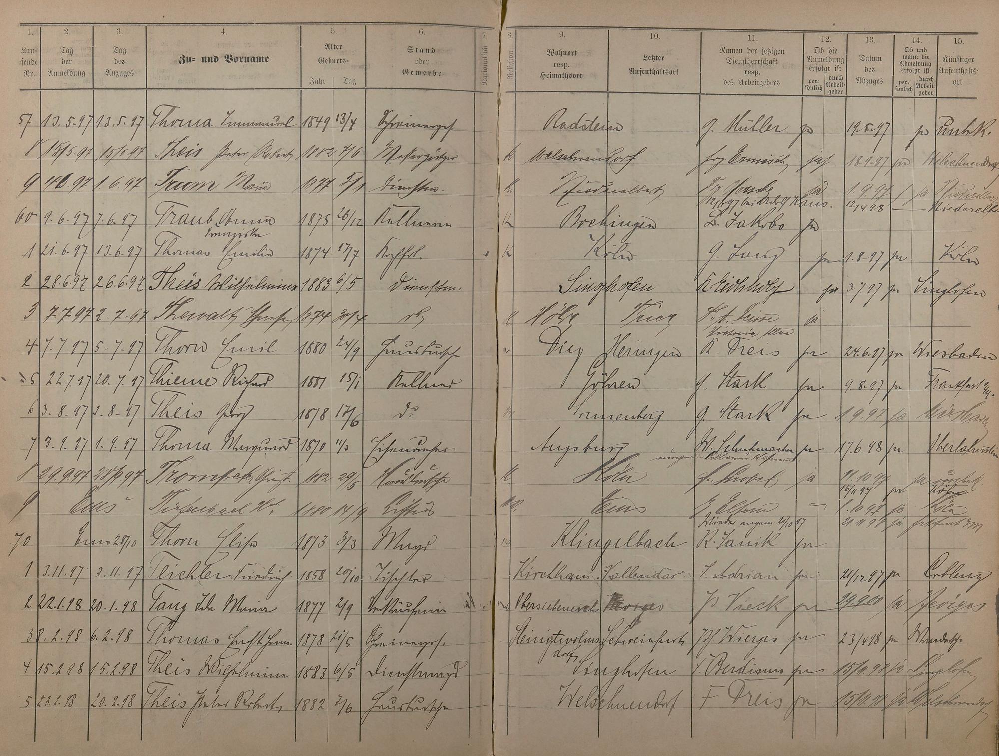 Melderegister der Gewerbegehilfen, Gesellen und Dienstboten 1895 - 1899