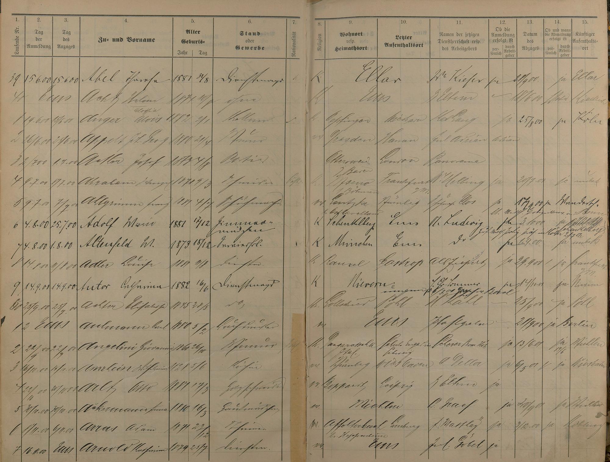 Melderegister der Gewerbegehilfen, Gesellen und Dienstboten 1900 - 1901