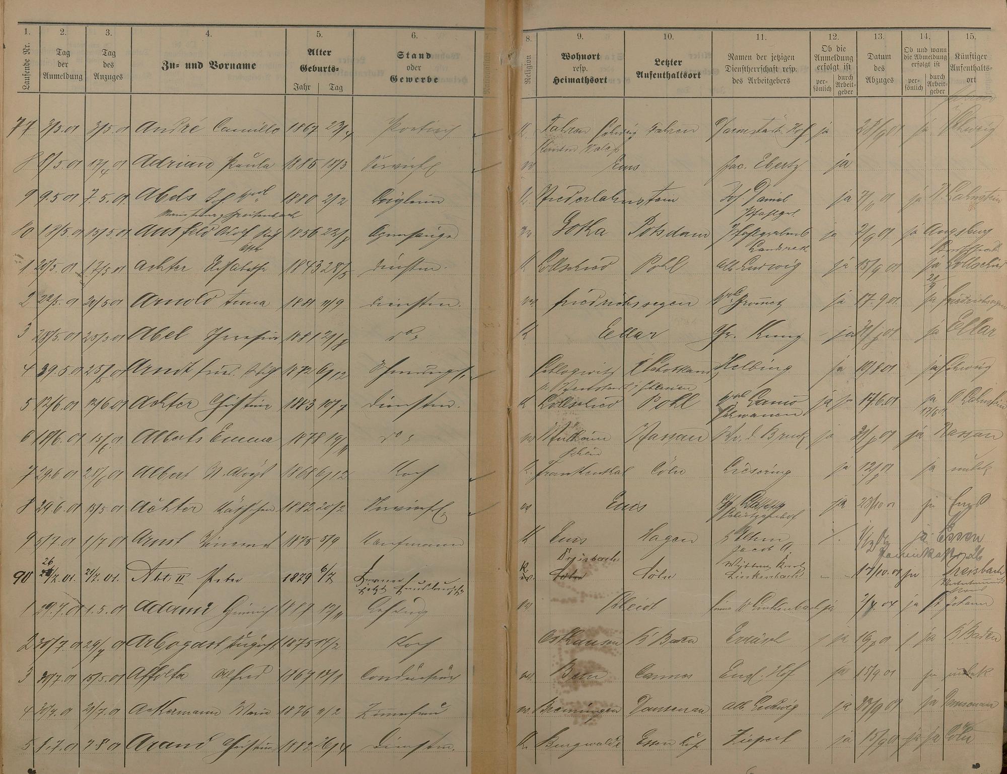 Melderegister der Gewerbegehilfen, Gesellen und Dienstboten 1900 - 1901