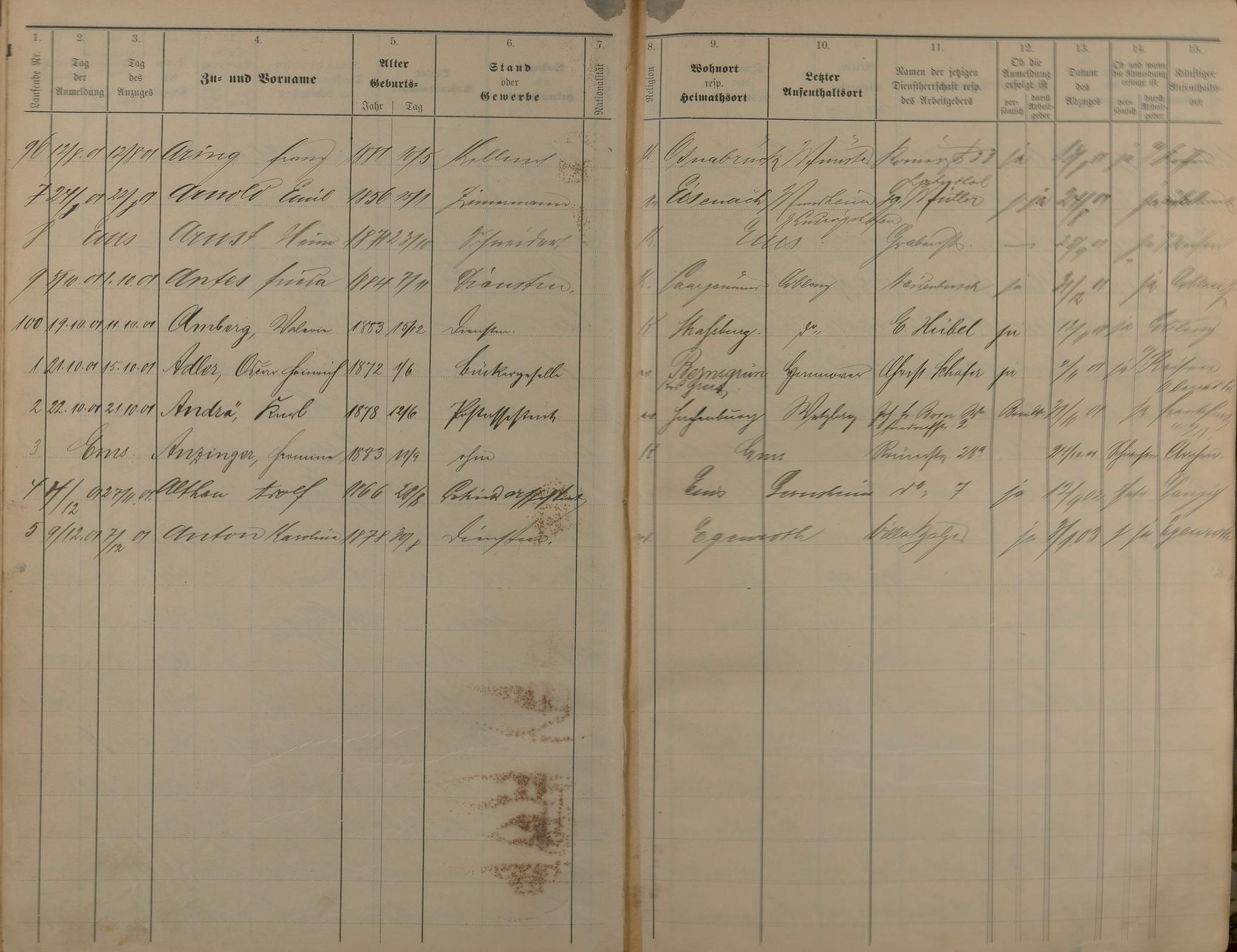 Melderegister der Gewerbegehilfen, Gesellen und Dienstboten 1900 - 1901