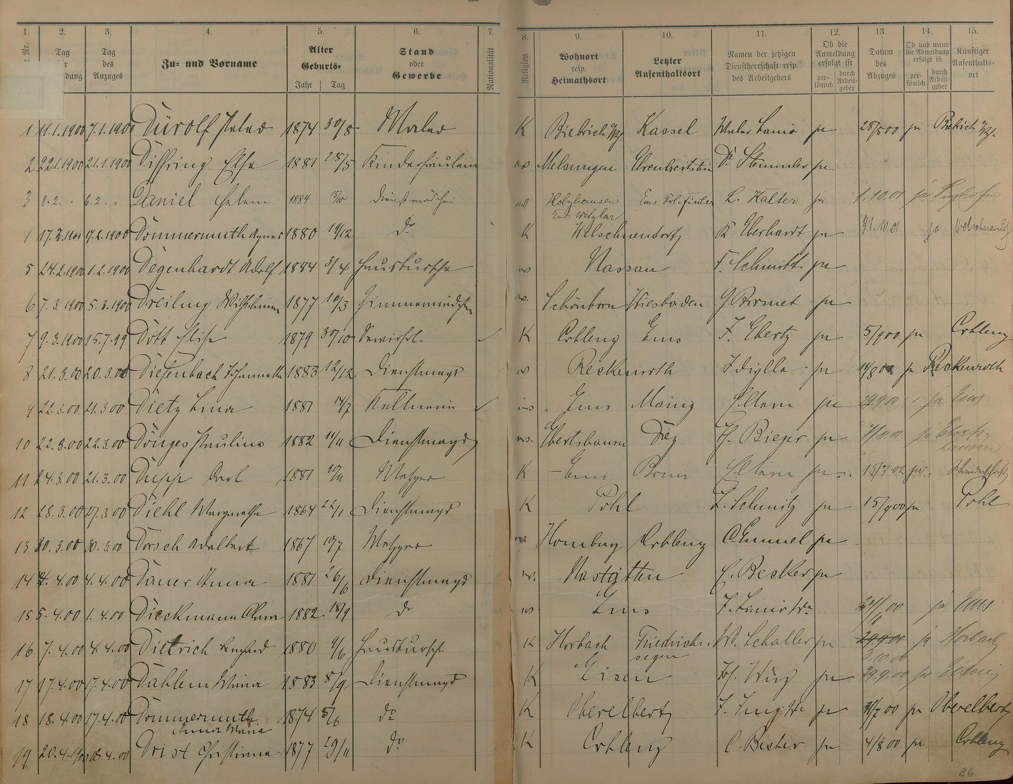 Melderegister der Gewerbegehilfen, Gesellen und Dienstboten 1900 - 1901