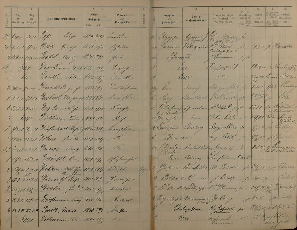 Melderegister der Gewerbegehilfen, Gesellen und Dienstboten 1900 - 1901