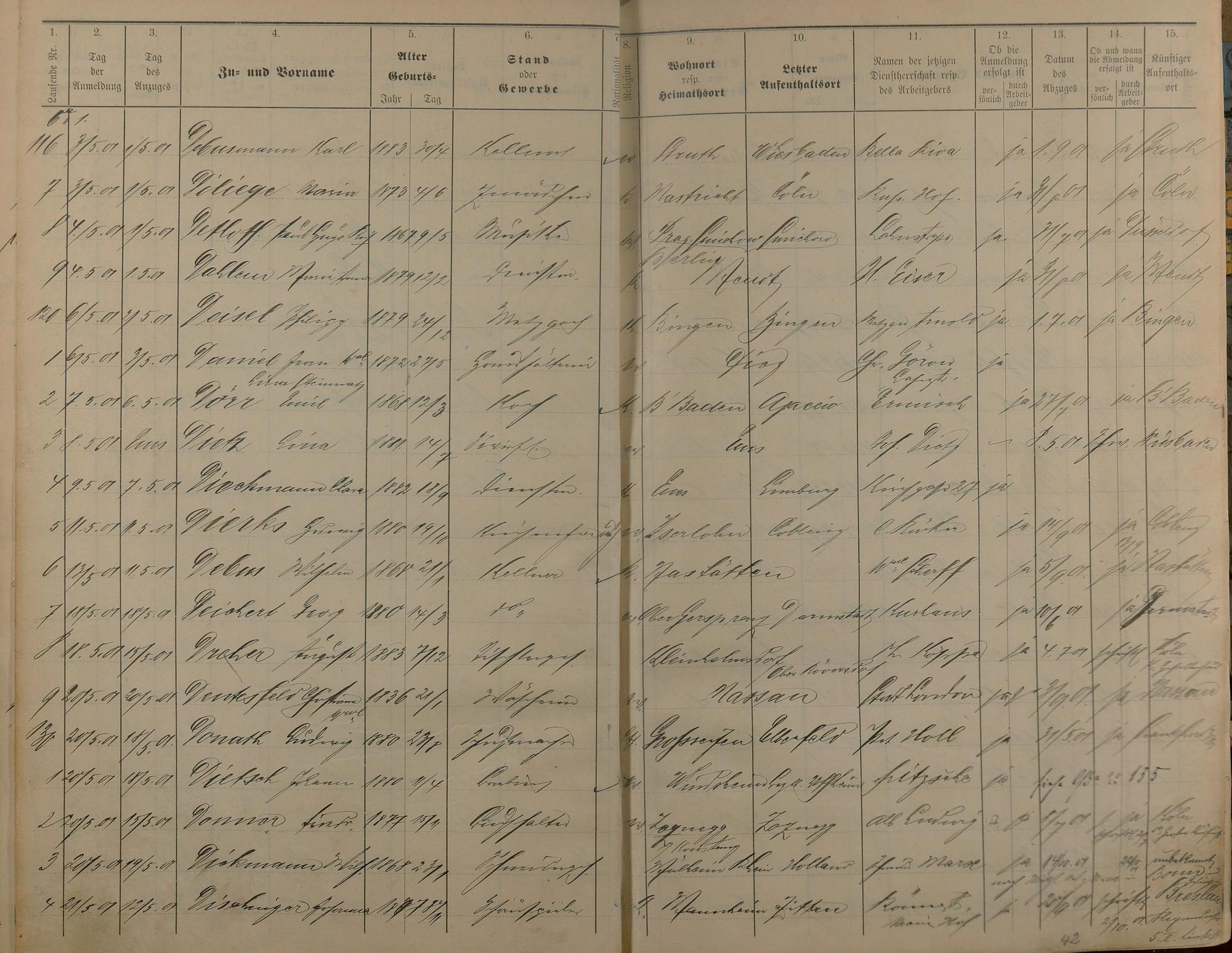 Melderegister der Gewerbegehilfen, Gesellen und Dienstboten 1900 - 1901