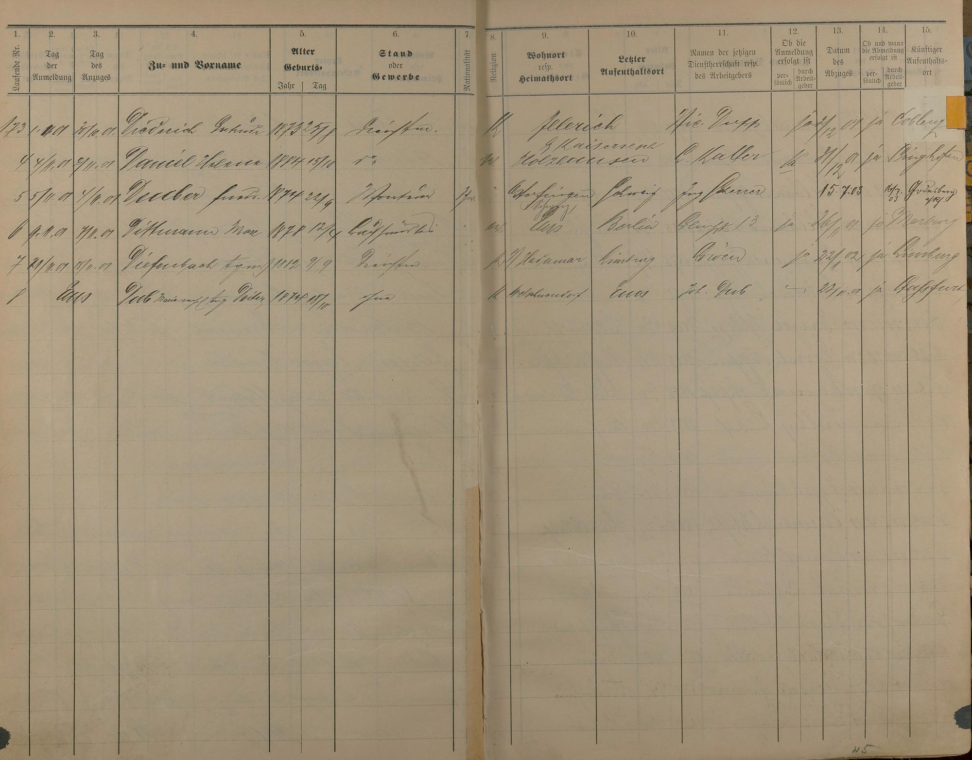 Melderegister der Gewerbegehilfen, Gesellen und Dienstboten 1900 - 1901