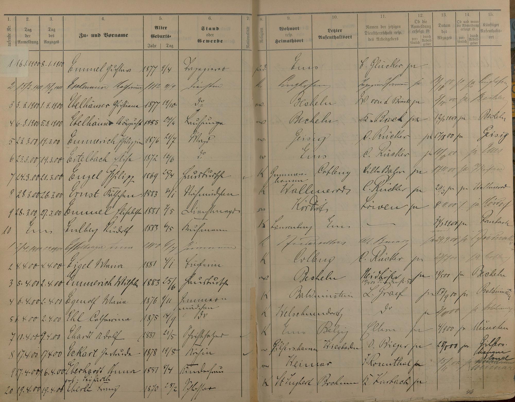 Melderegister der Gewerbegehilfen, Gesellen und Dienstboten 1900 - 1901