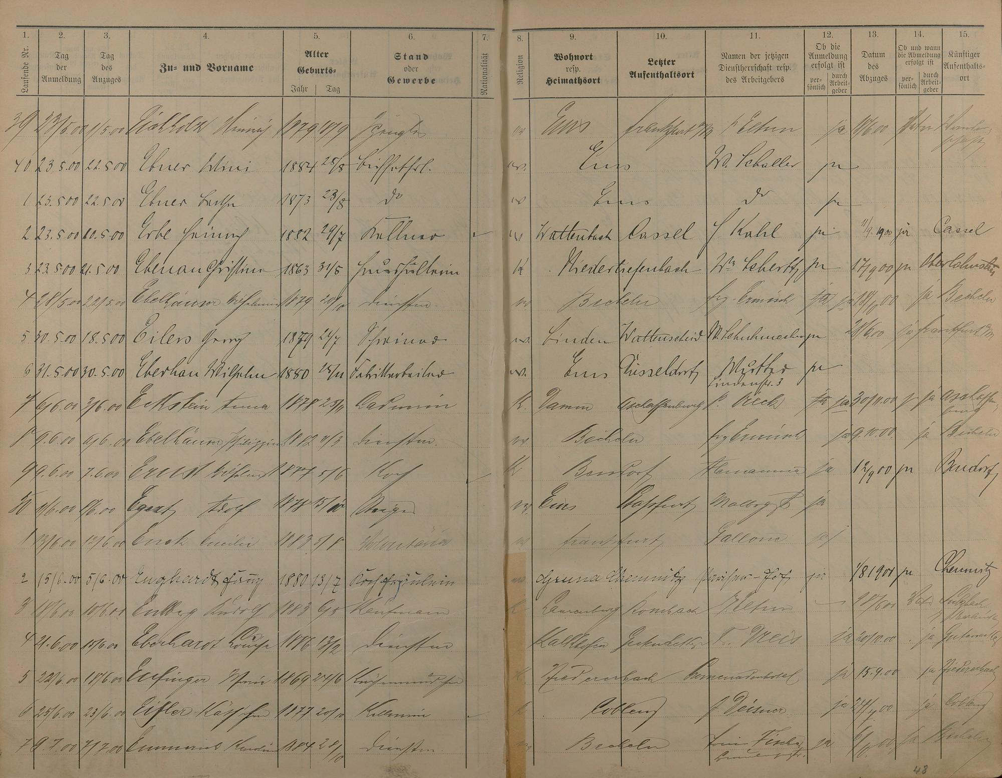 Melderegister der Gewerbegehilfen, Gesellen und Dienstboten 1900 - 1901