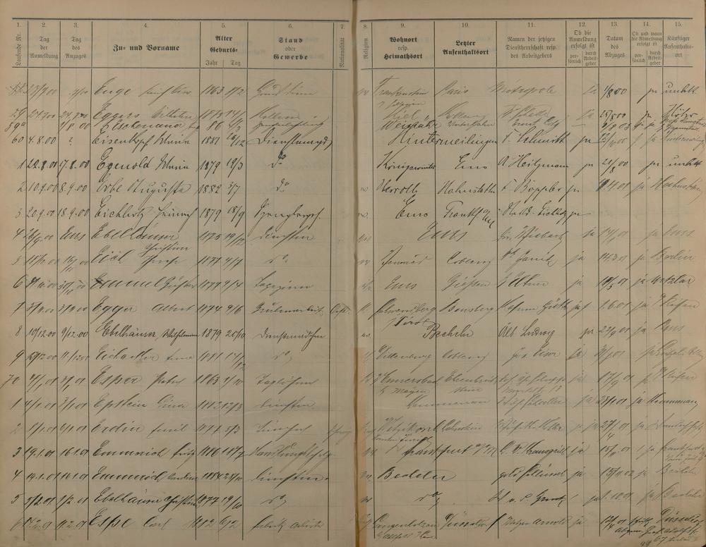 Melderegister der Gewerbegehilfen, Gesellen und Dienstboten 1900 - 1901