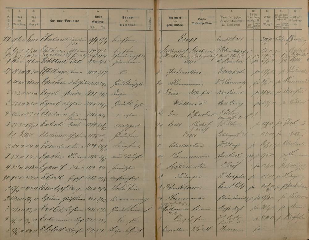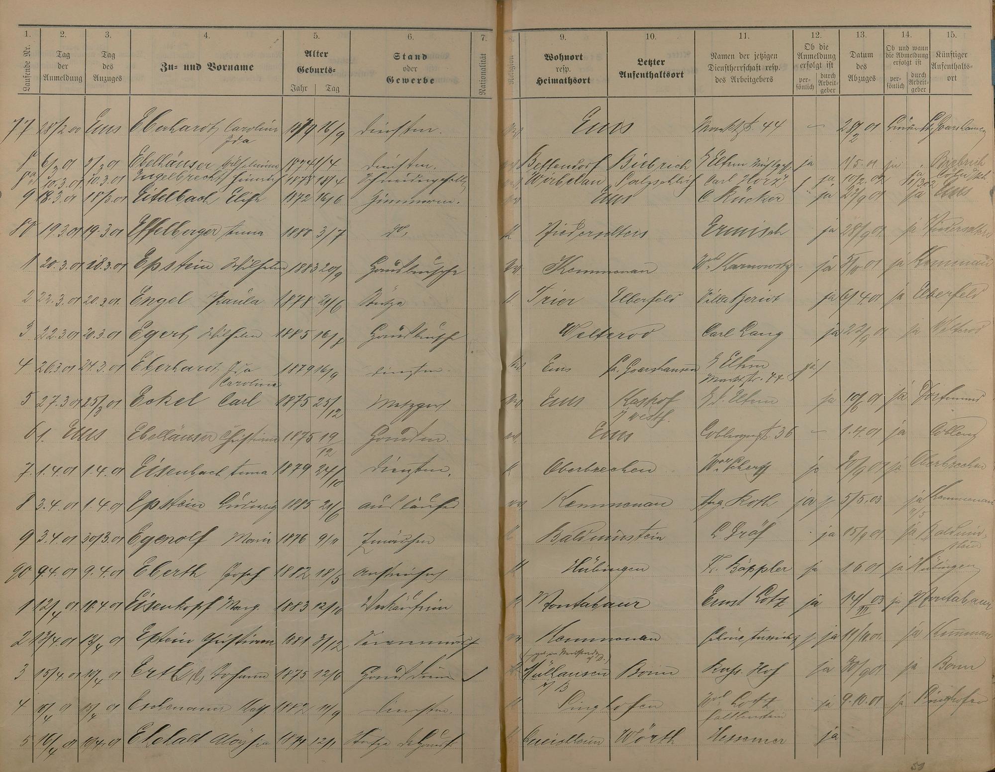 Melderegister der Gewerbegehilfen, Gesellen und Dienstboten 1900 - 1901