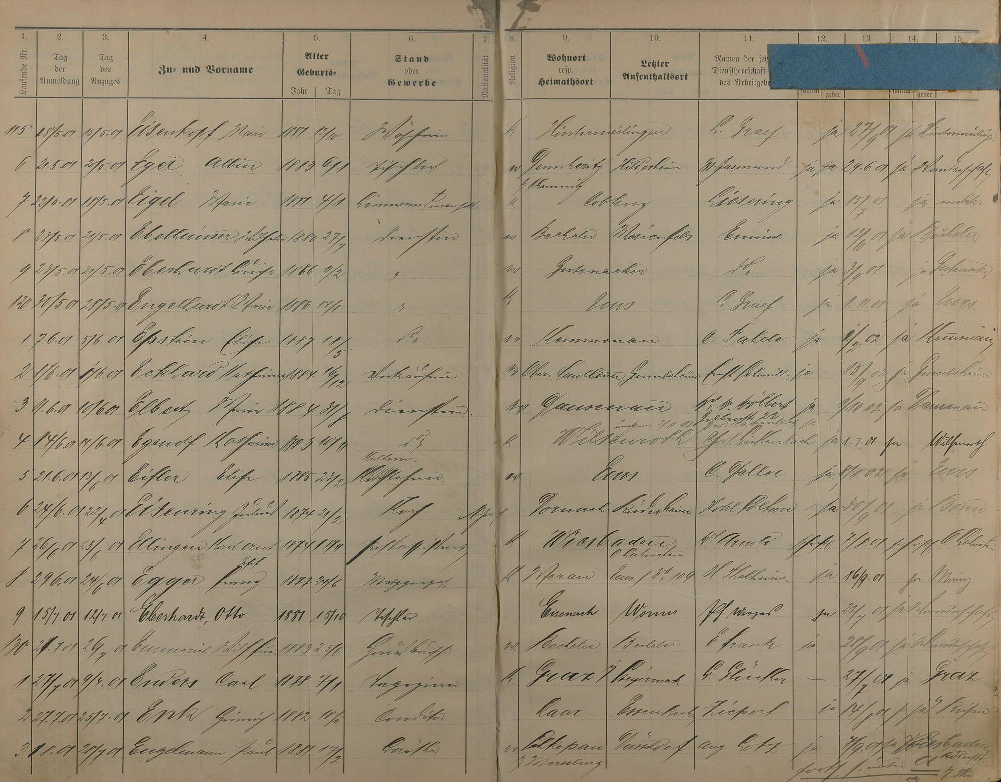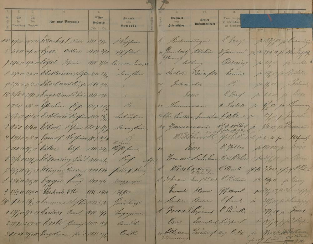 Melderegister der Gewerbegehilfen, Gesellen und Dienstboten 1900 - 1901