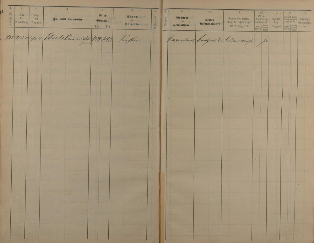 Melderegister der Gewerbegehilfen, Gesellen und Dienstboten 1900 - 1901