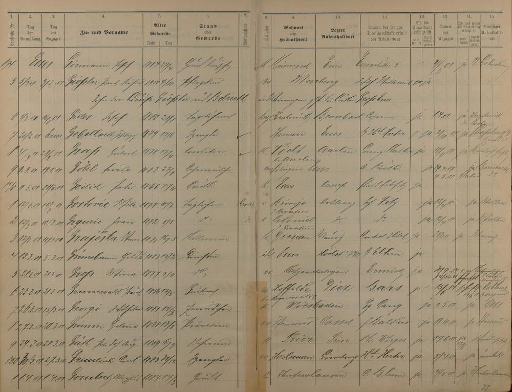 Melderegister der Gewerbegehilfen, Gesellen und Dienstboten 1900 - 1901