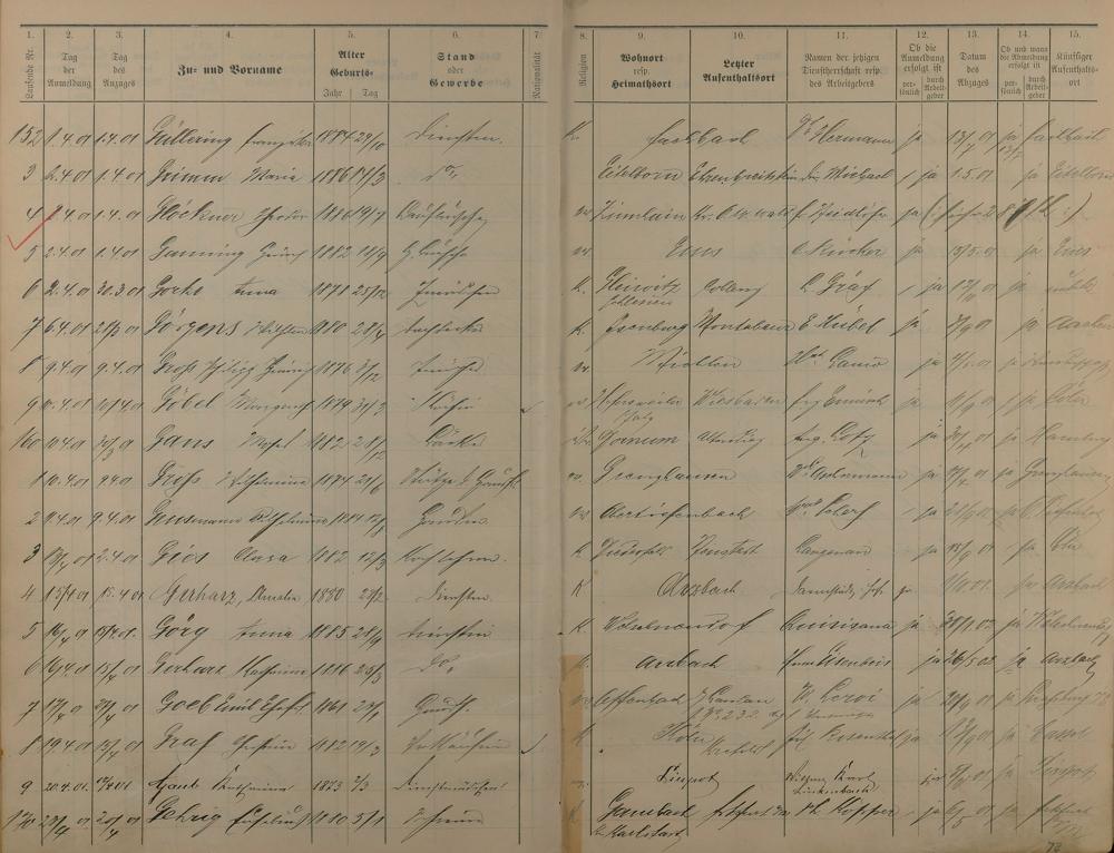 Melderegister der Gewerbegehilfen, Gesellen und Dienstboten 1900 - 1901