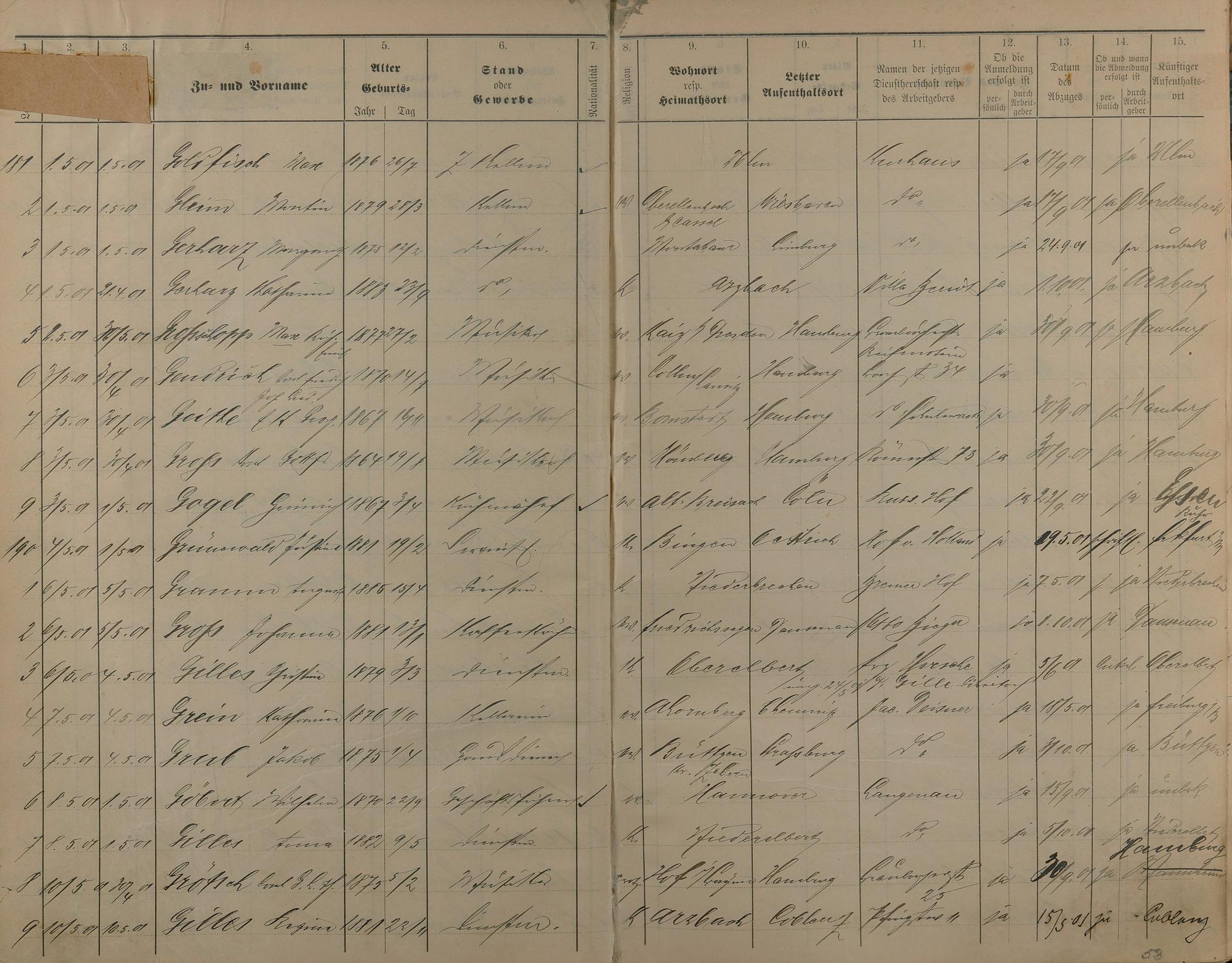 Melderegister der Gewerbegehilfen, Gesellen und Dienstboten 1900 - 1901