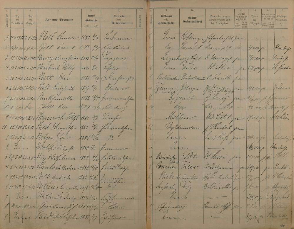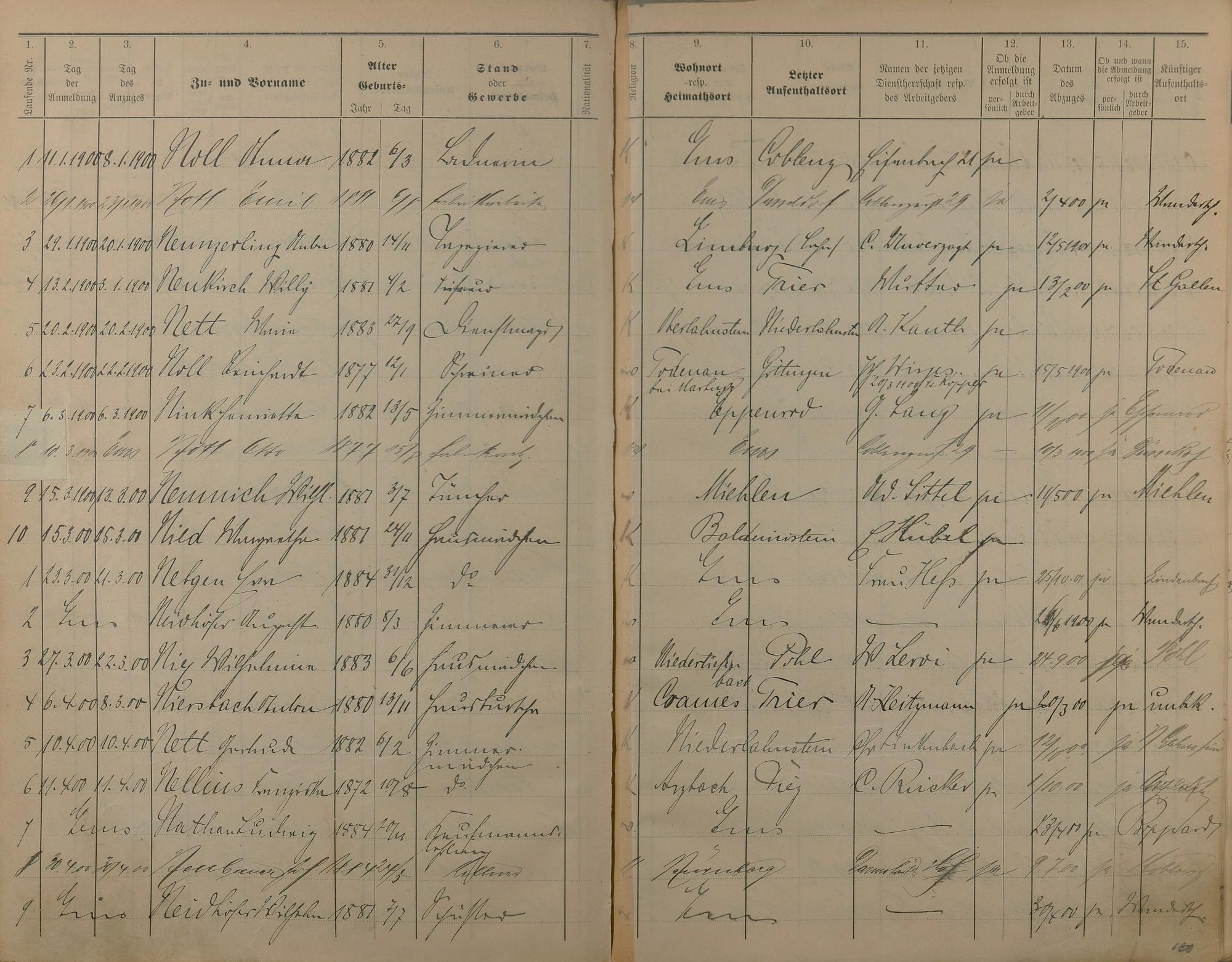 Melderegister der Gewerbegehilfen, Gesellen und Dienstboten 1900 - 1901
