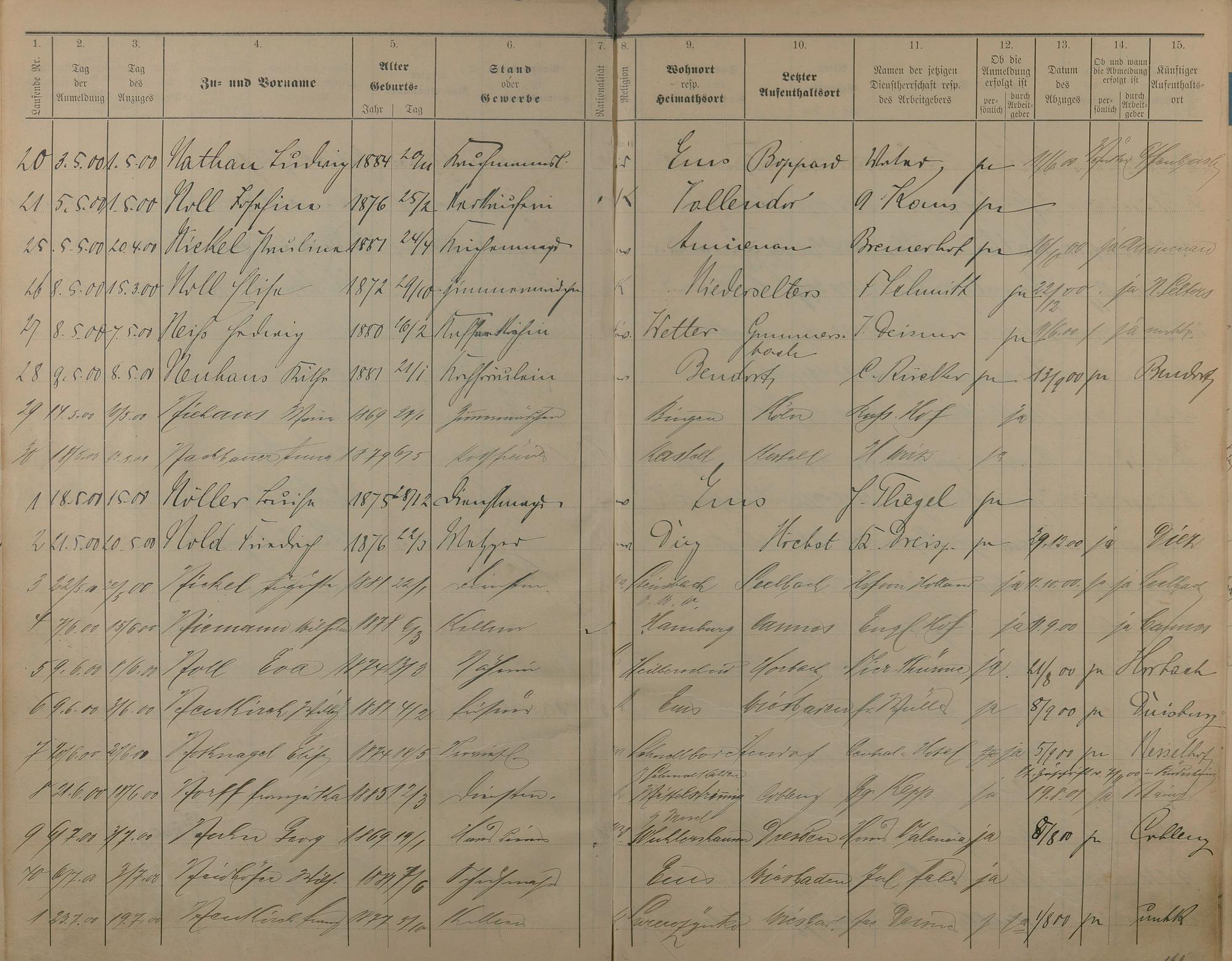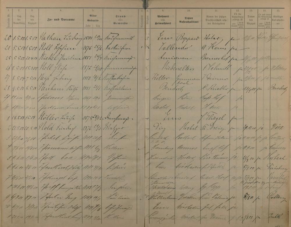 Melderegister der Gewerbegehilfen, Gesellen und Dienstboten 1900 - 1901