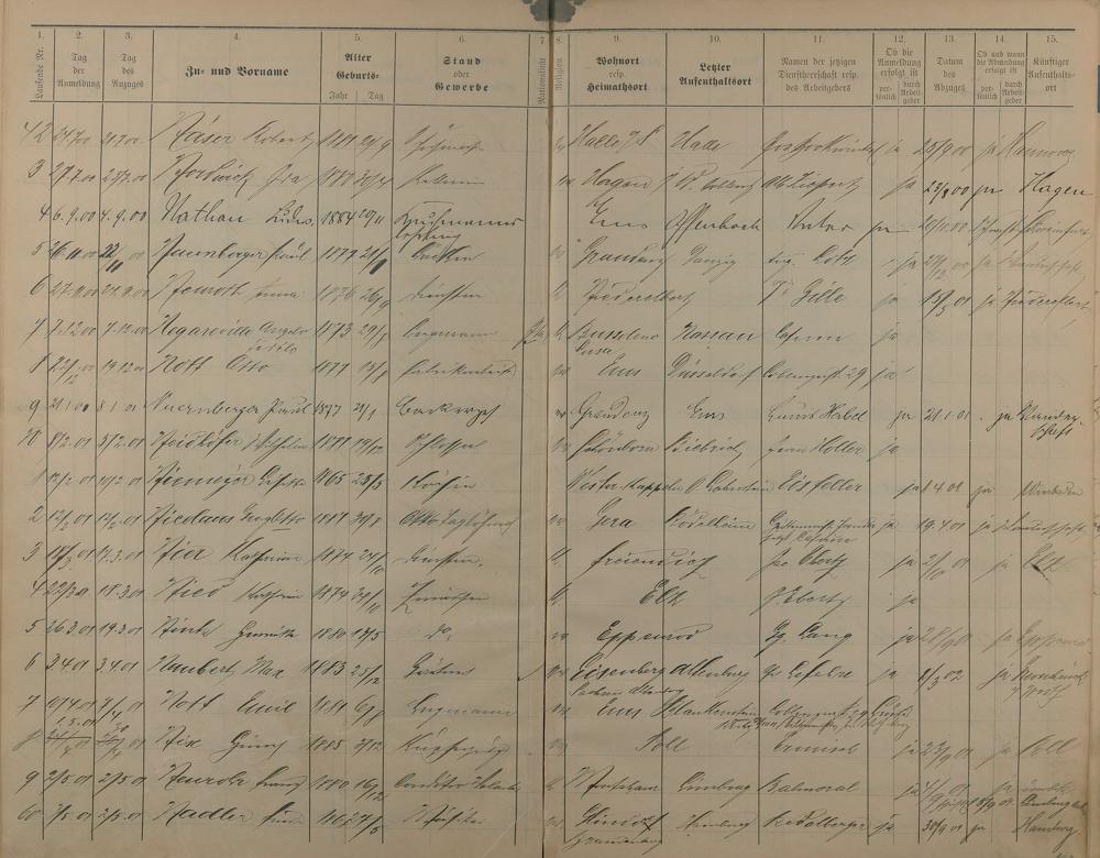 Melderegister der Gewerbegehilfen, Gesellen und Dienstboten 1900 - 1901