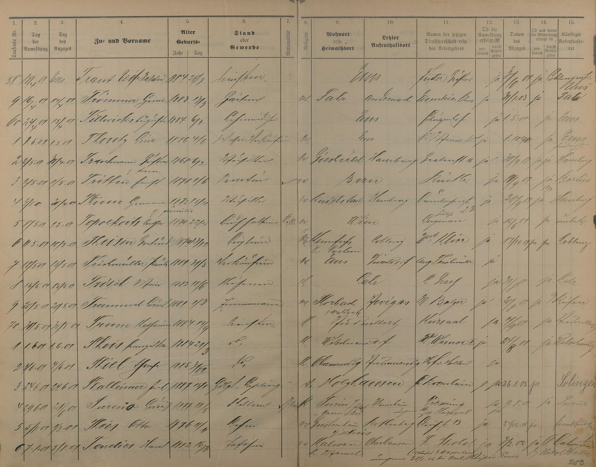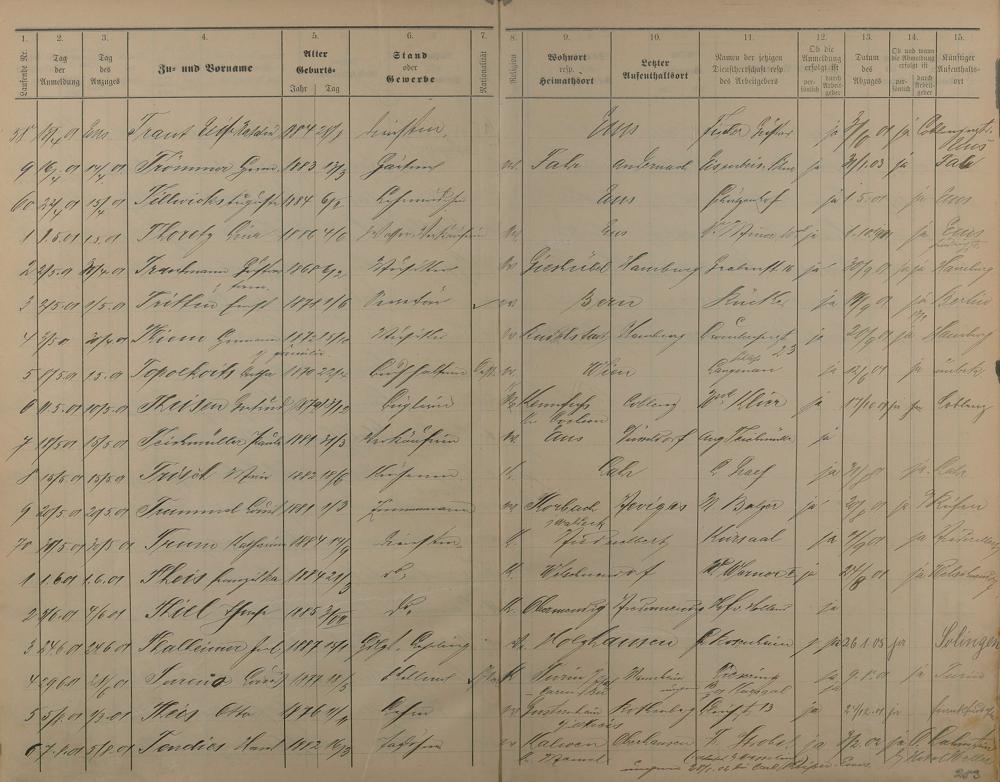 Melderegister der Gewerbegehilfen, Gesellen und Dienstboten 1900 - 1901