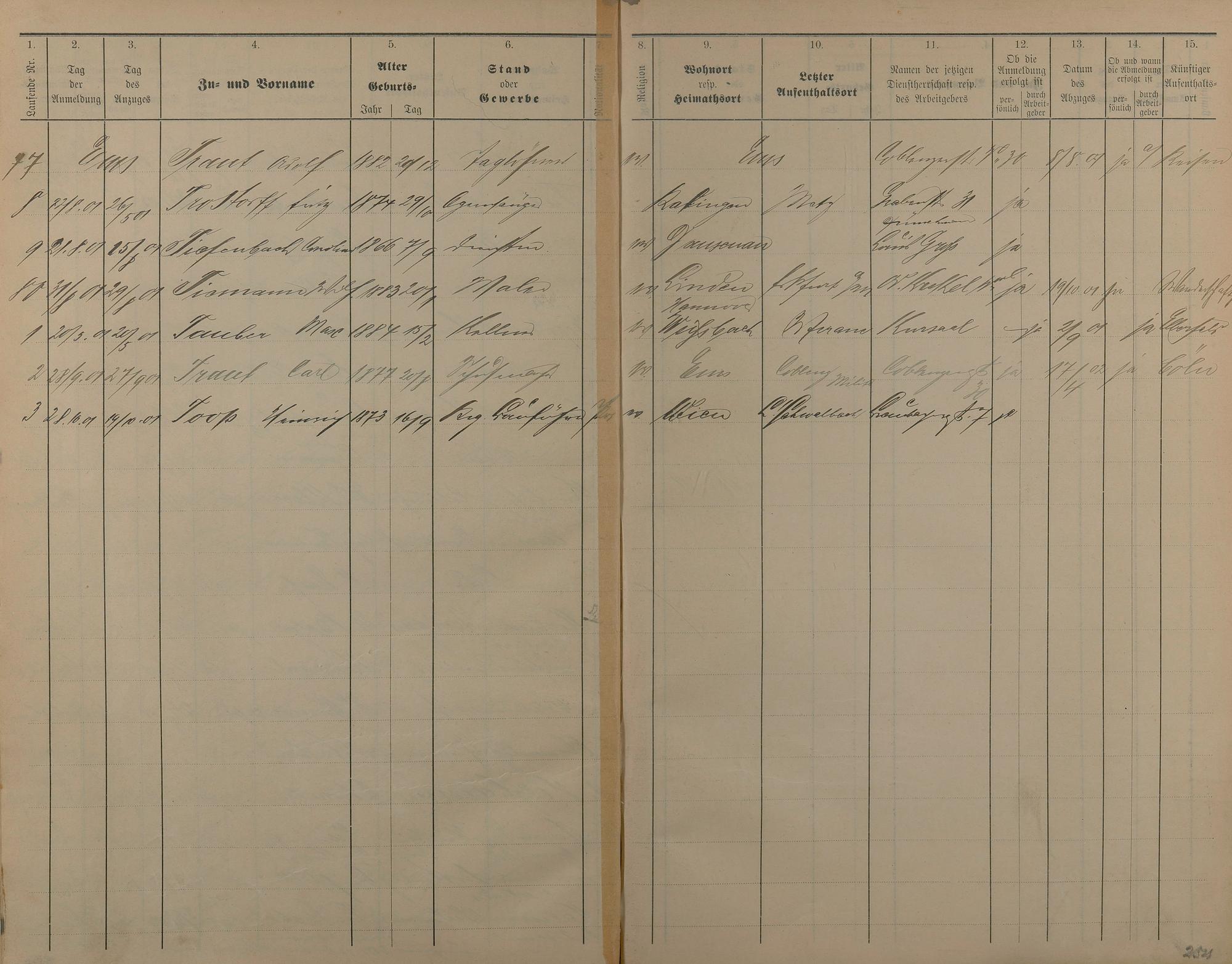 Melderegister der Gewerbegehilfen, Gesellen und Dienstboten 1900 - 1901
