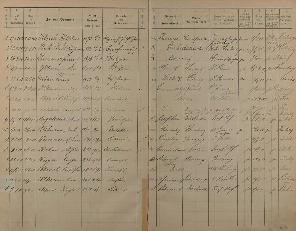 Melderegister der Gewerbegehilfen, Gesellen und Dienstboten 1900 - 1901