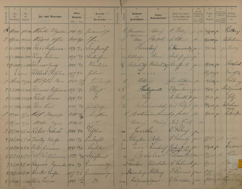Melderegister der Gewerbegehilfen, Gesellen und Dienstboten 1900 - 1901